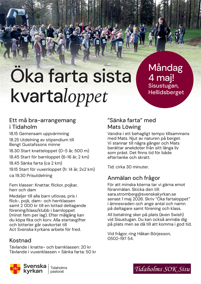| Öka farta sista kvarta-loppet | 4 maj, 18:00 |