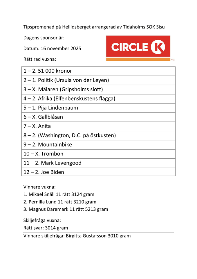 | Tipspromenad | 23 nov, 09:00 |